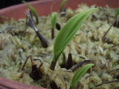 2〜3年 花が咲かないでしょうが 咲く位成長した頃・・・、会のみんなに配れる位になってるかも? 水苔から顔を出す位で植え付けています。 会長が、肥料大好きだからねぇ〜・・・ぐふふぅ〜っと