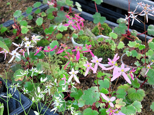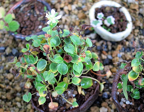 畳 初雪蔓 (鉢 石灰) * 根洗い黄金シダ&タツナミソウ等 (陶板 七輪陶芸)