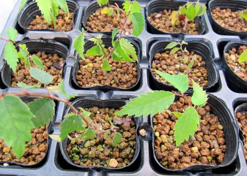 2010年に欅の実生をした時は、軸切挿しせずにトレーのまま育てました。