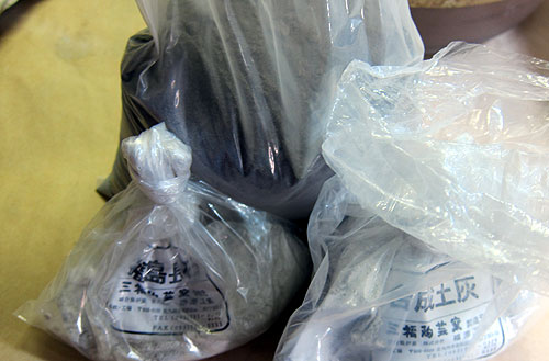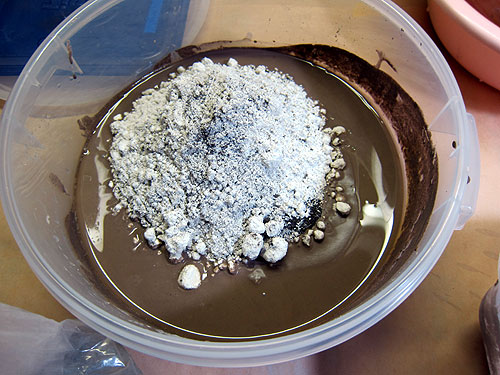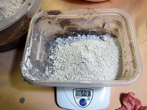 この間の焼成で、火山釉が少なくなったので補充しました。