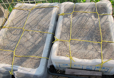 発泡スチロールにバラ蒔き 網伏せ ↓