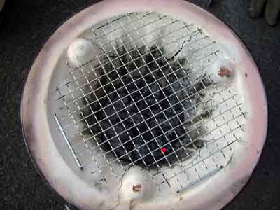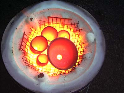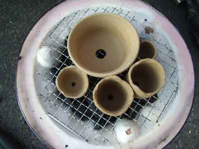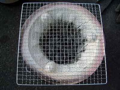 七輪に付属されていた網をの上に鉢を乗せて焼いてみました。