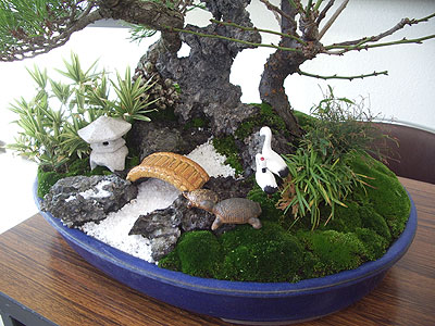 添えの亀や鶴などは、誰でも手に入れれる材料でと