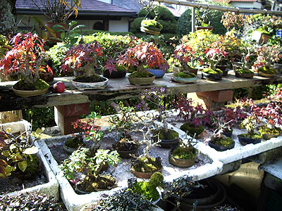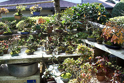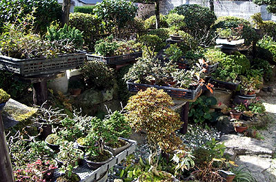 広い庭を埋め尽くす山野草&盆栽たち