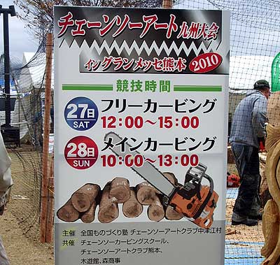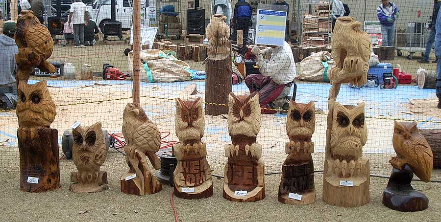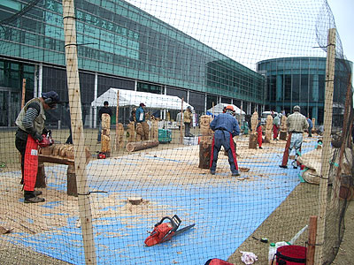 表の広場ではチェーンソーアートで競技の真っ只中でした。