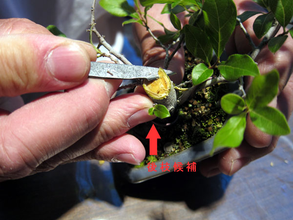 (元の方に芽を出したい時、芽切りをせず樹勢をつけ この時期に追い込む)