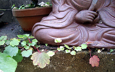 真ん中の大きな株になっている大文字草・・・鉢に植わってないんです