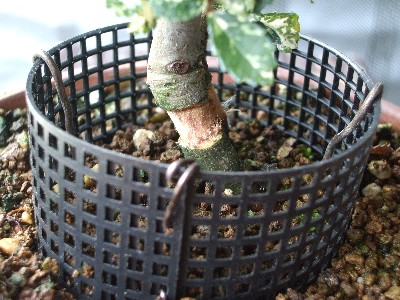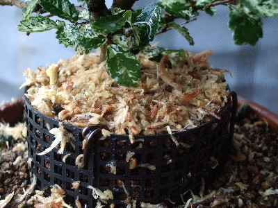 鉢底ネットを適当な大きさに切り巻き付けアルミ線で固定